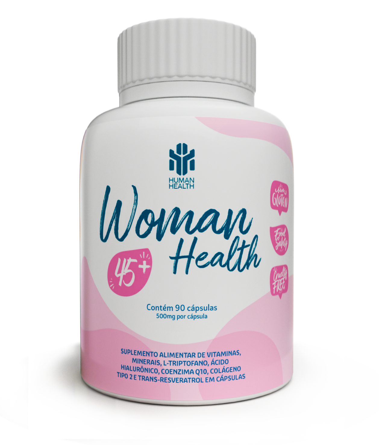 O produto Woman Health 45+ é um suplemento especialmente desenvolvido para mulheres a partir dos 45 anos de idade, principalmente, em fase de climatério, pois contém uma combinação de vitaminas e minerais essenciais para a saúde, como a Vitamina B3, que em conjunto com o Triptofano pode ajudar na produção de serotonina e melatonina, neurotransmissores indispensáveis para a qualidade do sono e equilíbrio emocional.